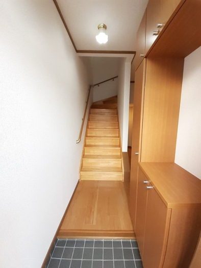 - ベランダバルコニー/下駄箱/脱衣所/洗髪洗面台/自動湯はり/追い焚き機能/給湯[LPガス]/ガスコンロ対応/CATV(基本ch)/階段下収納/南向き