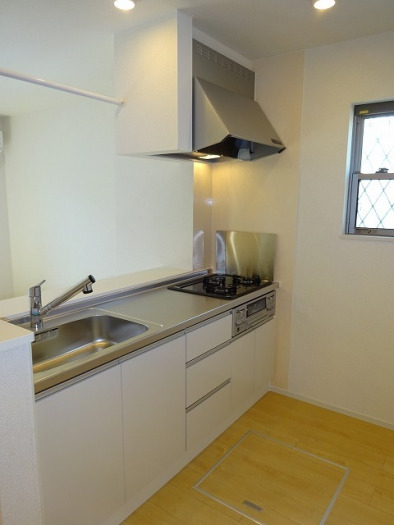 フローリング/ベランダバルコニー/下駄箱/洗髪洗面台/床下収納/室内物干し/角部屋/追い焚き機能/温水洗浄便座/浴室内乾燥機/1坪タイプ浴室/システムキッチン/給湯[LPガス]/ガス調理器具[3ヶ口]/ペアガラス/自動湯はり/脱衣所/調理器具