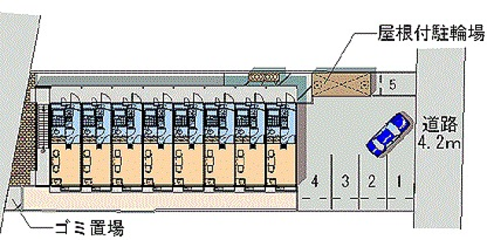 南田宮にある家具家電付き物件。宅配BOX、防犯カメラ。